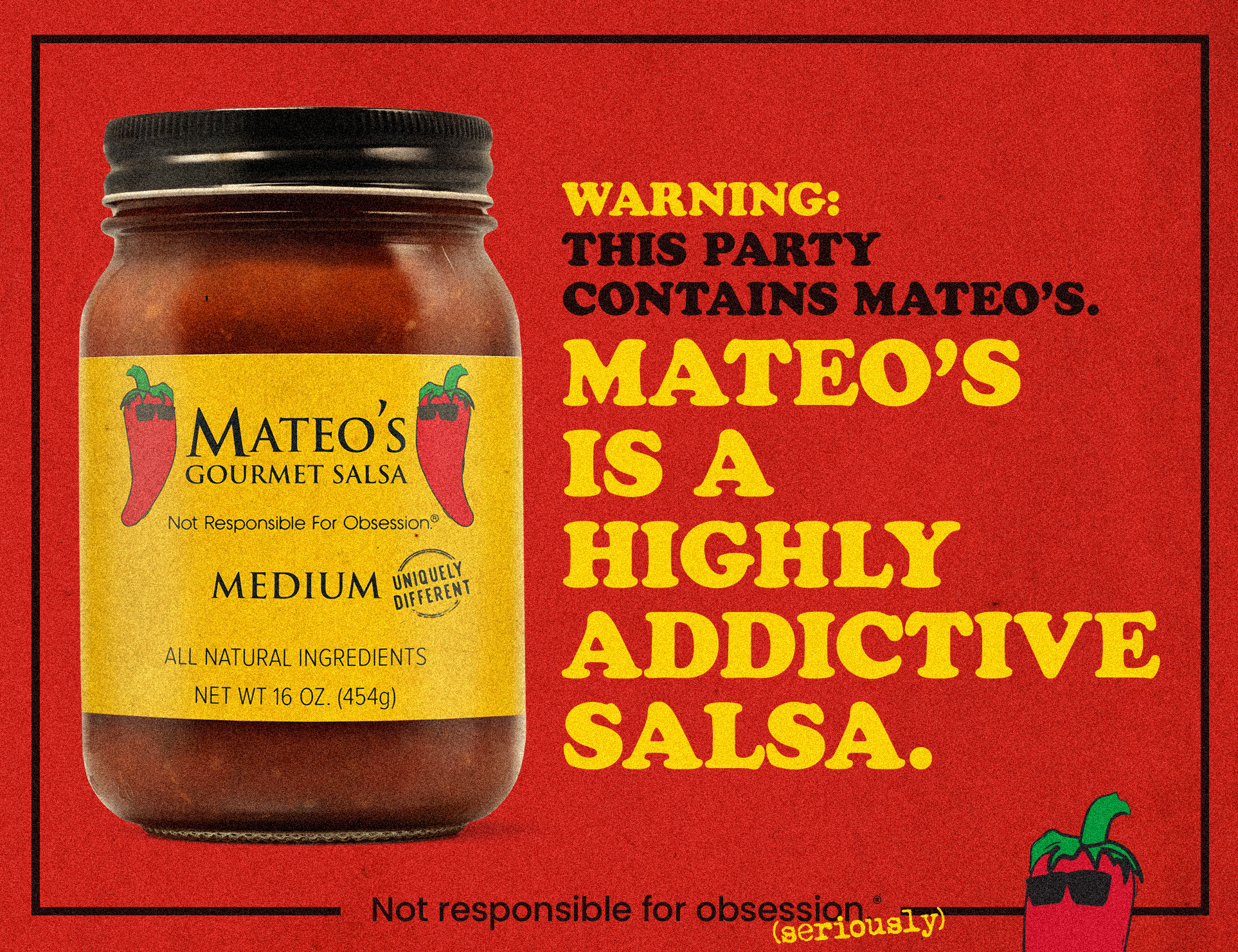 “Not Responsible for Obsession” is printed on every jar of Mateo’s Salsa, but it’s not a tagline.